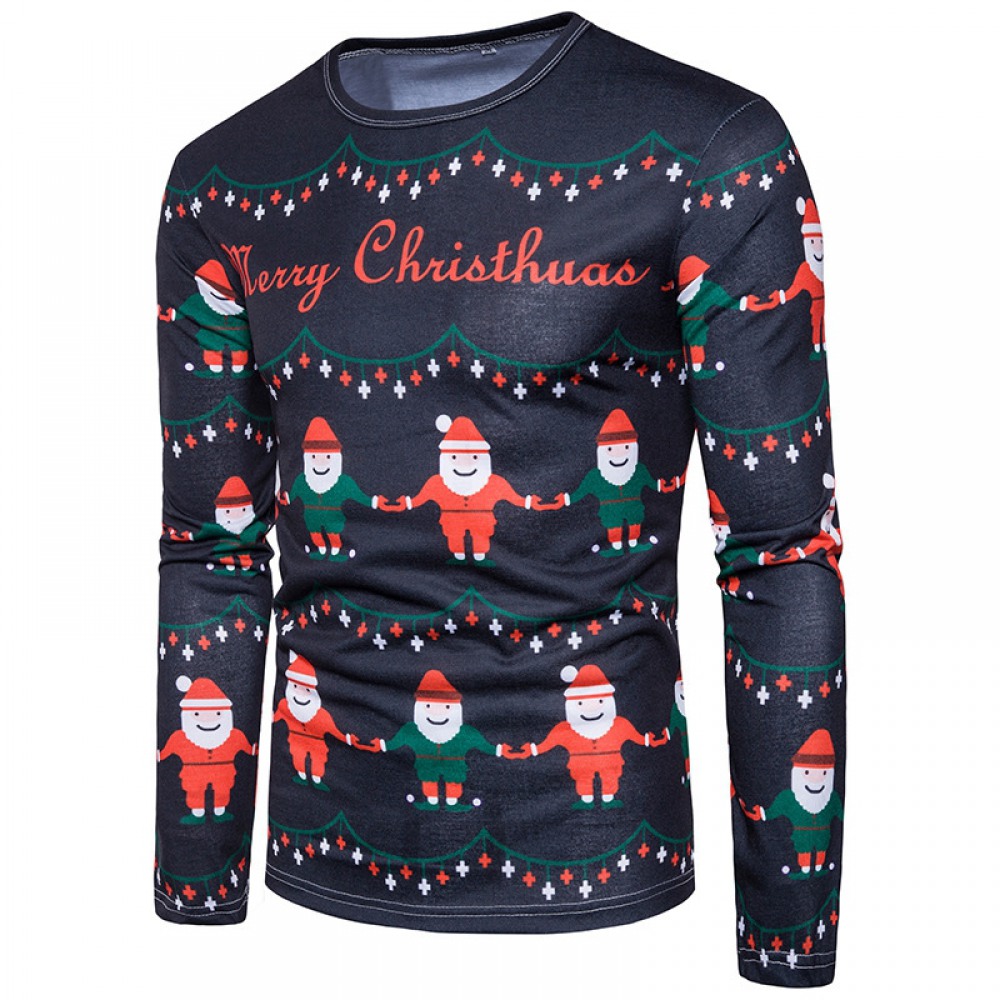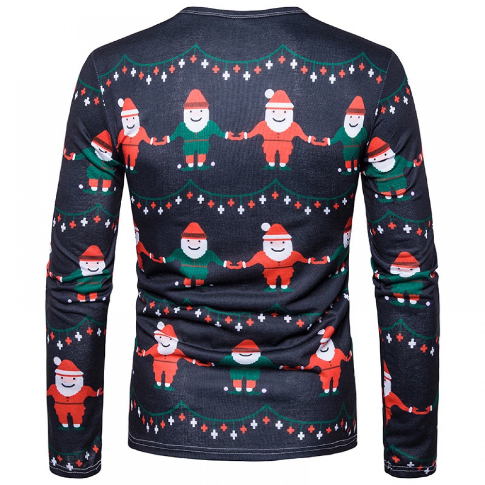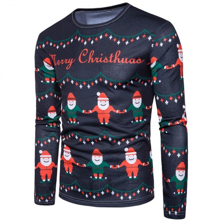 New Festive Santa and Villain Jacquard Men's Printed Long-Sleeved T-Shirt