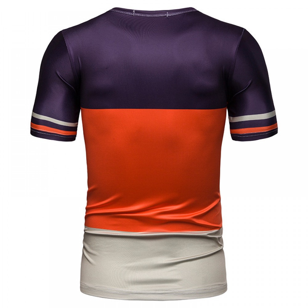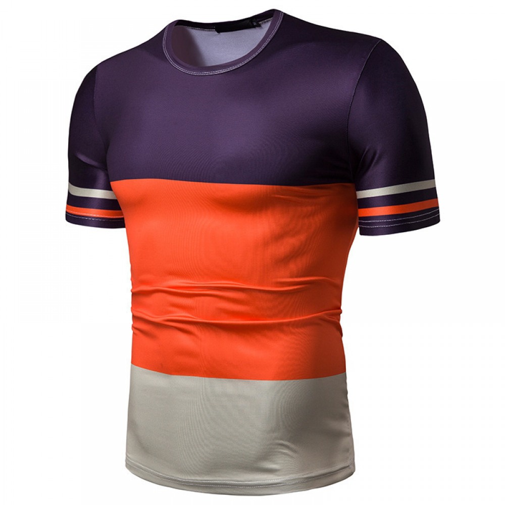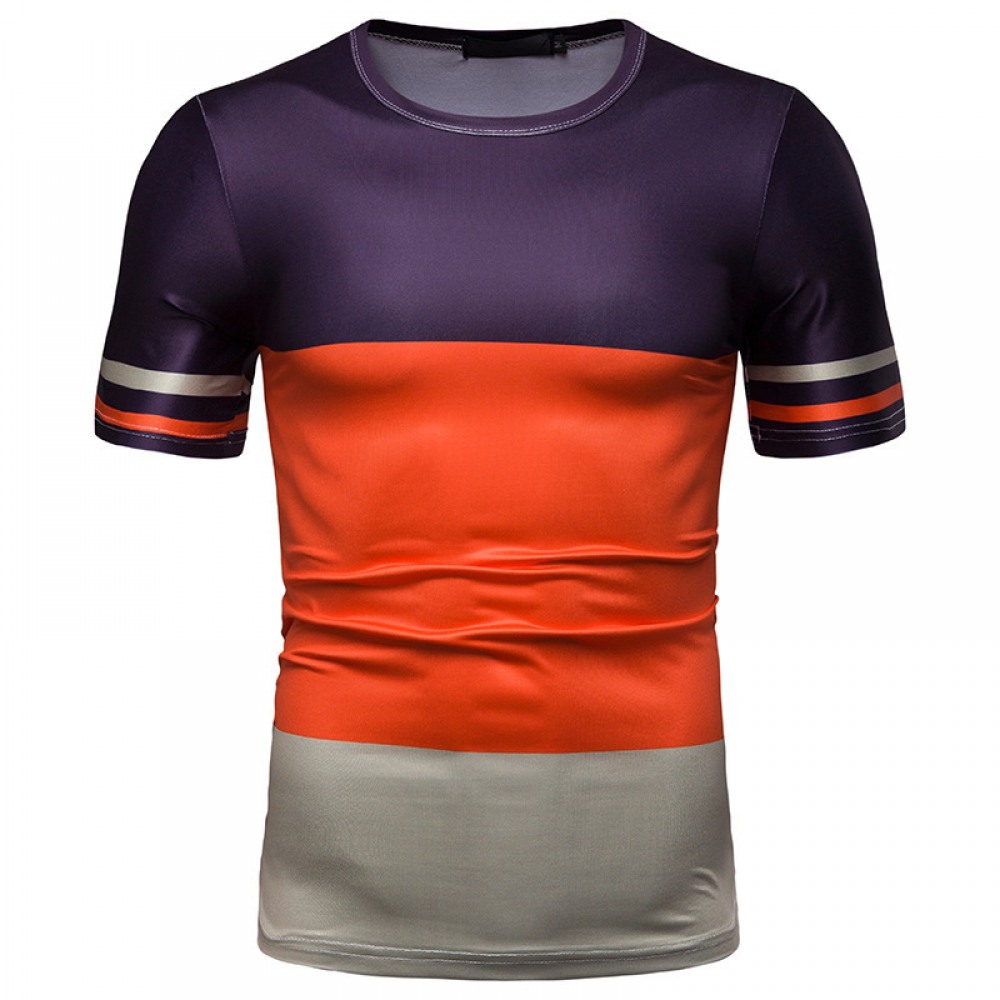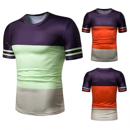 New Summer Men's Short-Sleeved T-Shirt Mens Contrast Striped Slim Casual T-Shirt