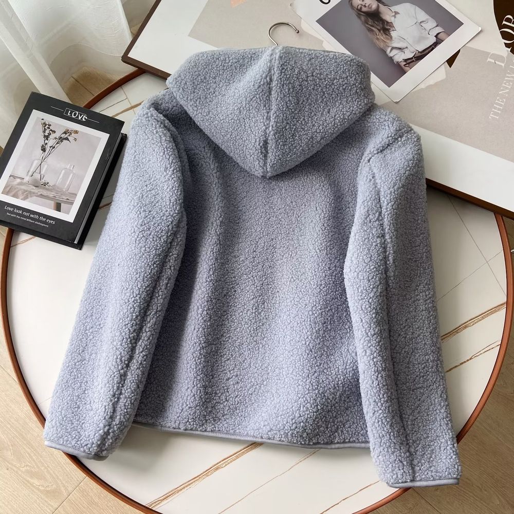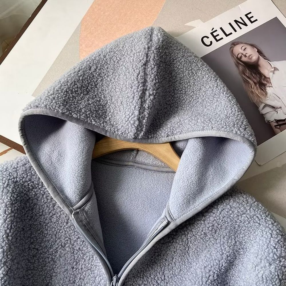 Women's Polar Fleece Hooded Jacket Long-Sleeved Warm Zipper Cardigan